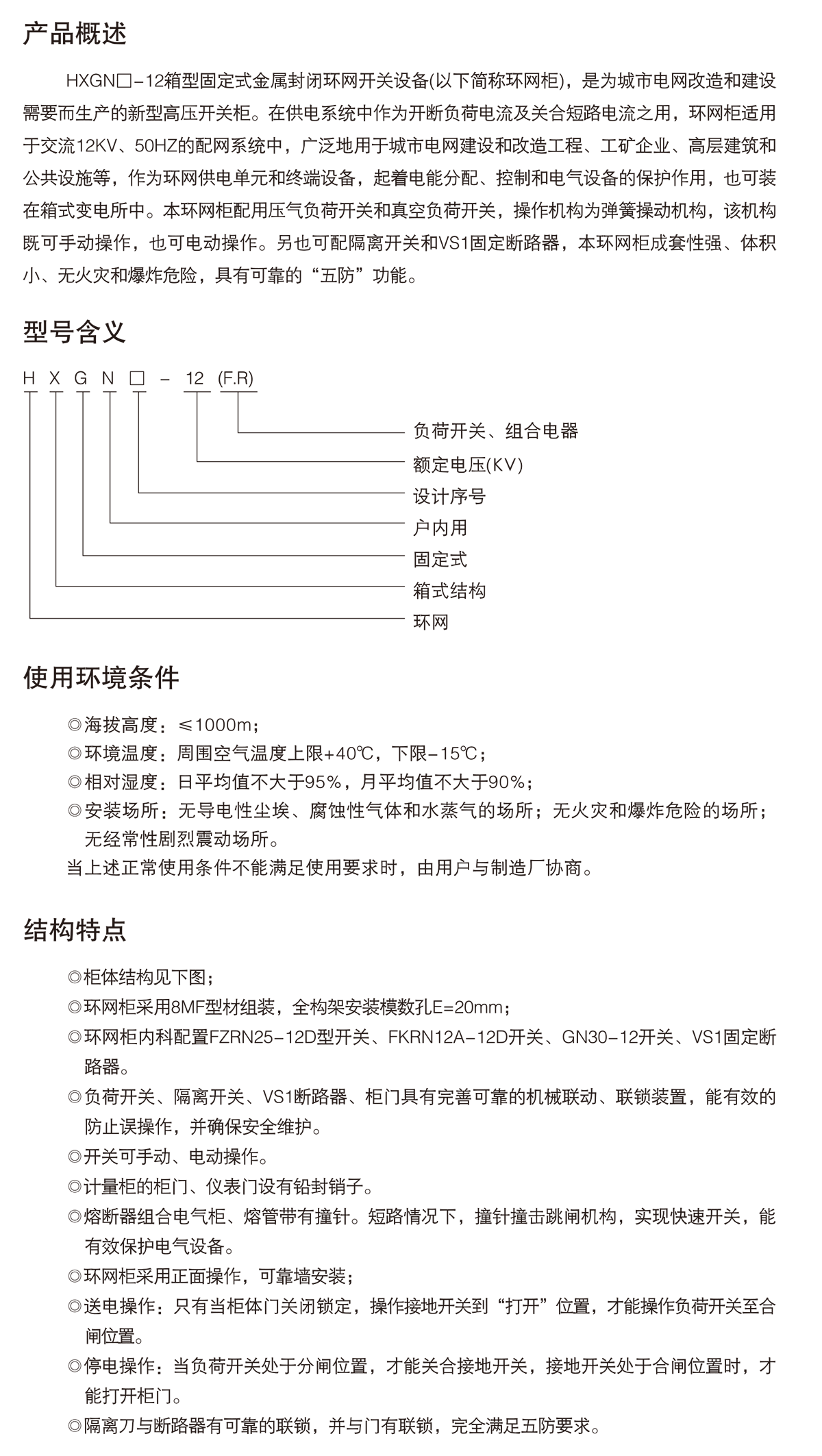 HXGN口-12箱型固定式金屬封閉環網開關設備